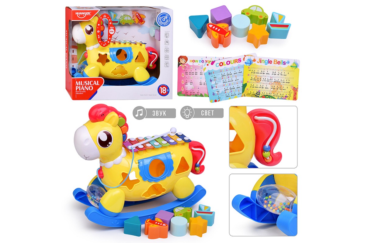 Сортер-металлофон "Лошадка" (цвет желтый) в коробке