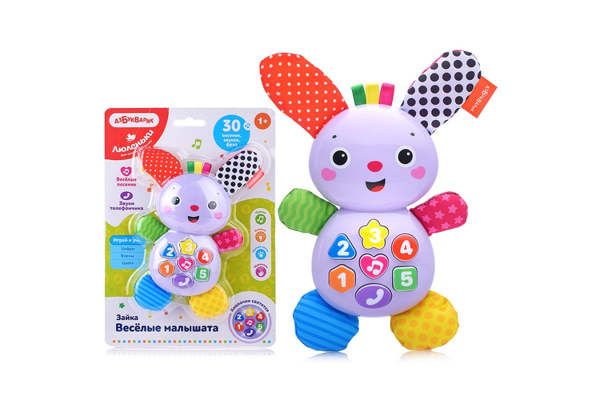 • А еще у зайки мягкие лапки и шуршащие ушки, которые так приятно трогать!