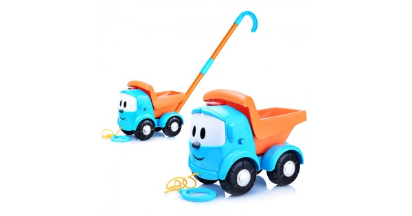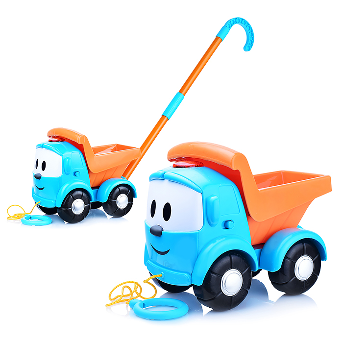 Каталка с палкой "Грузовичок Лева" (15 песен и звуков. свет. бат.) в коробке