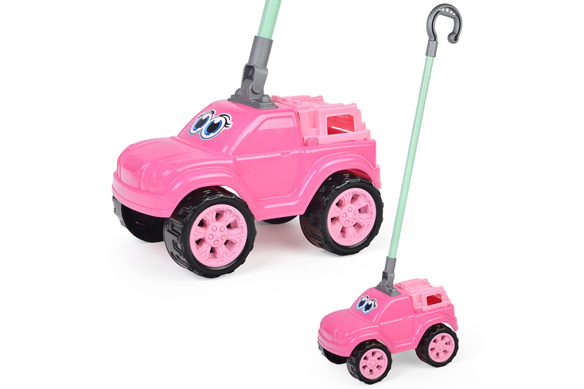 Автомобиль-каталка "Боби" с ручкой (розовый)