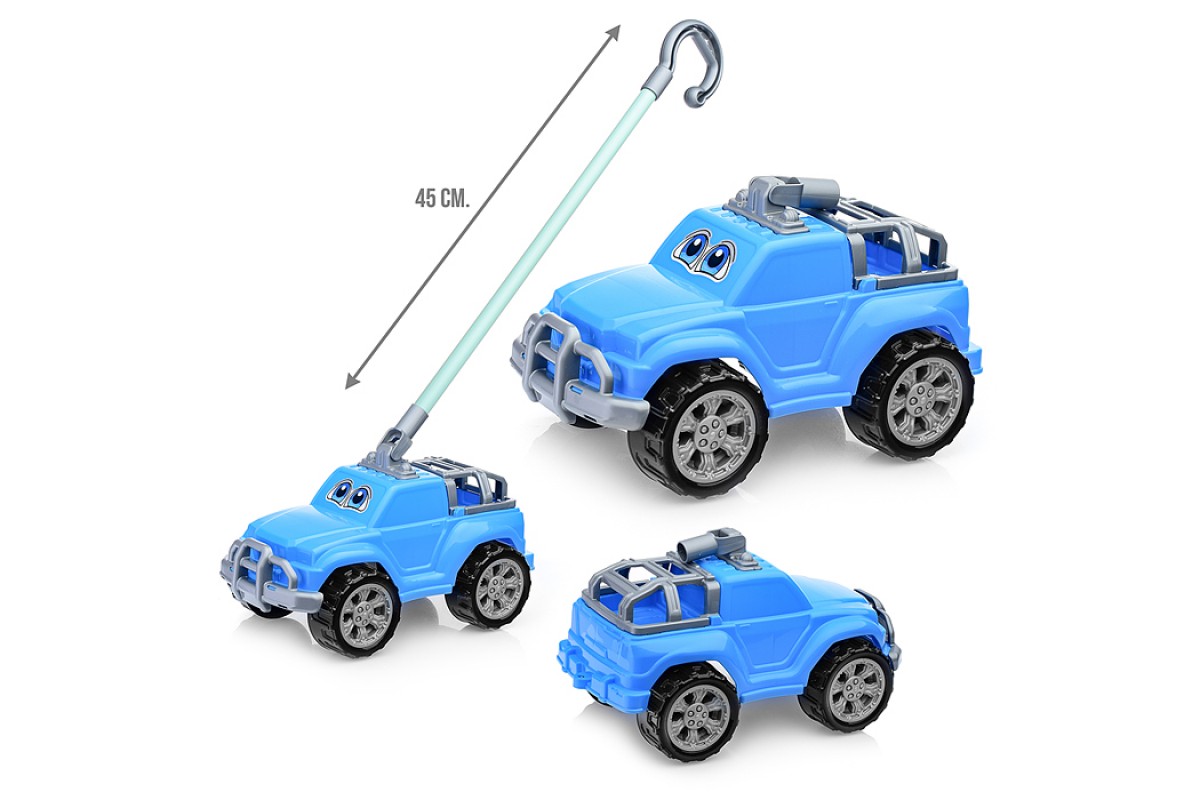 Автомобиль-каталка "Дени" с ручкой (голубой)