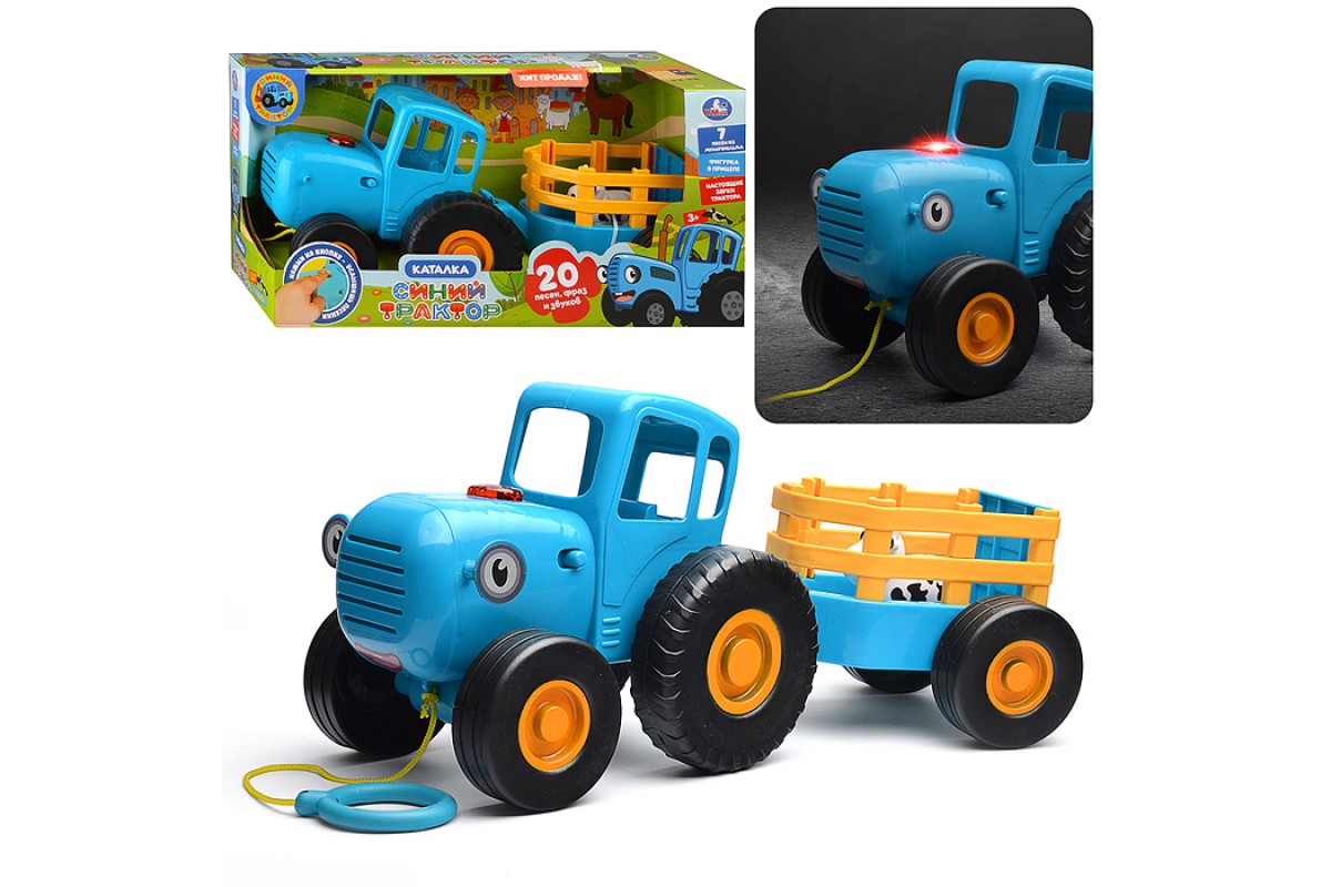 Каталка с прицепом "Синий трактор" (30 песен, фраз, звуков)
