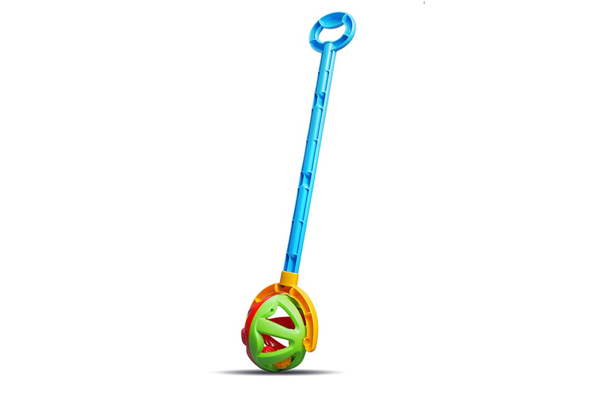 Каталка с ручкой "Шарик" (зелено-красная)