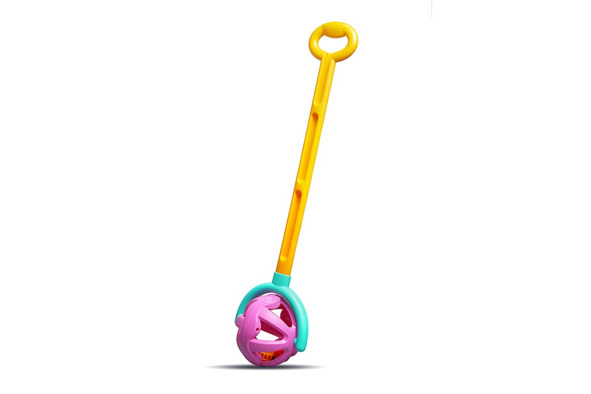 Каталка с ручкой "Шарик" (желто-фиолетовая)