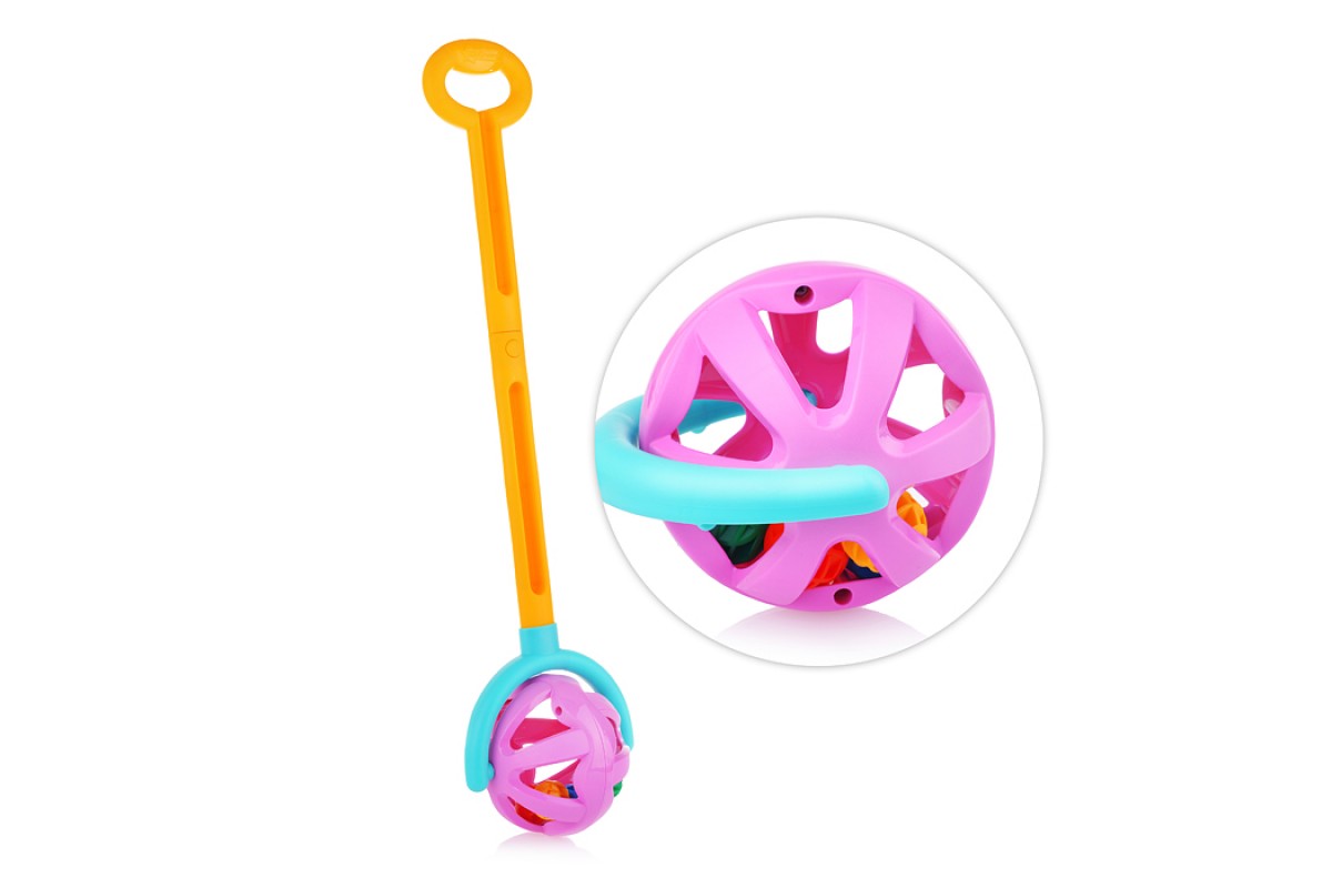 Каталка с ручкой "Шарик" (желто-фиолетовая)