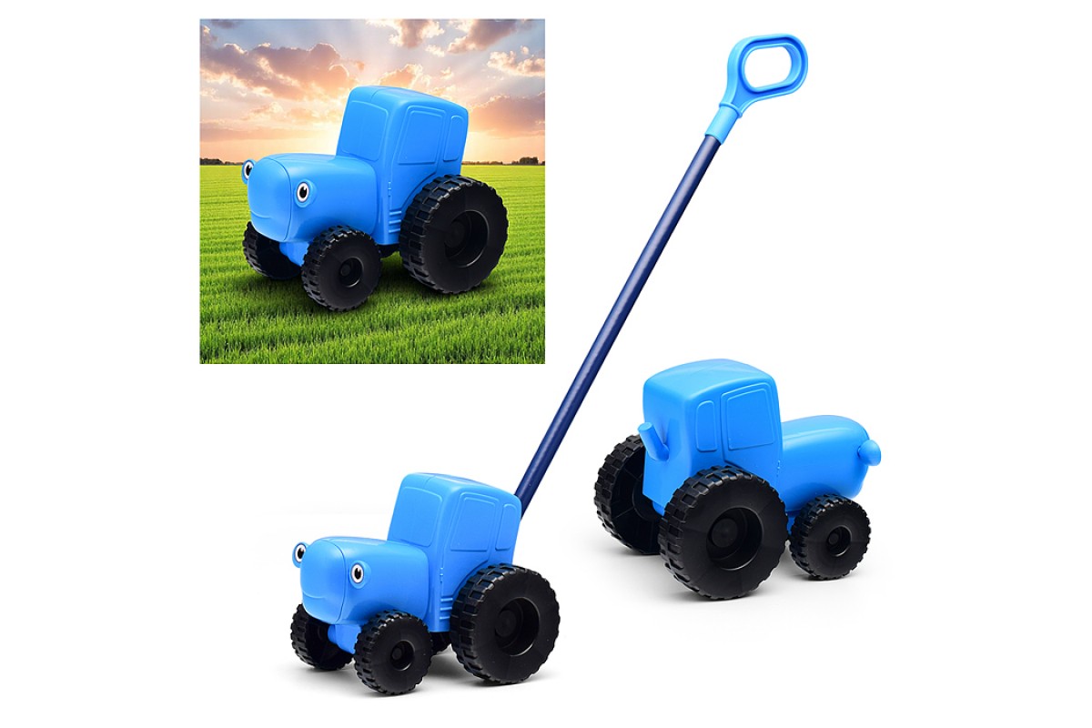 Каталка с ручкой "Синий трактор" 20 см. (свободный ход, синий)