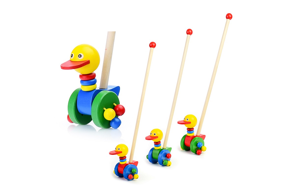• Колёса игрушки крутятся, деревянные бусины на колёсах постукивают во время движения.