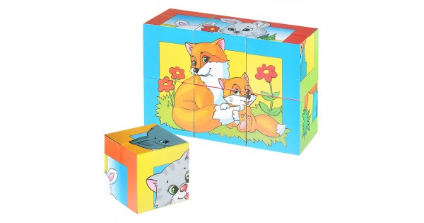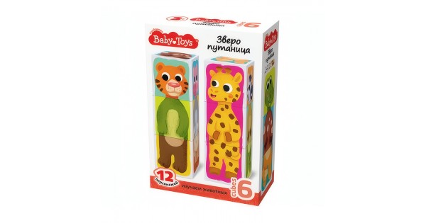 Кубики пластмассовые Умные кубики "Зверопутаница" 6 шт (12 персонажей) Baby Toys