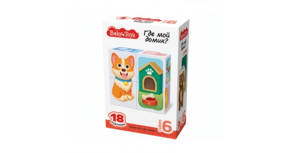 Кубики пластмассовые Умные кубики "Где мой домик?" 6 шт (18 картинок) Baby Toys