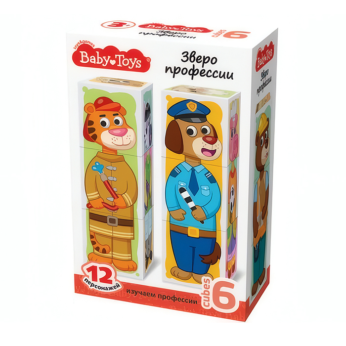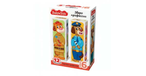 Кубики пластмассовые Умные кубики "Зверофессии" 6 шт (12 персонажей )