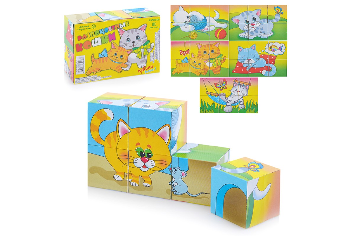 Кубики (6 куб) "Разноцветные кошки №1", термоплёнка