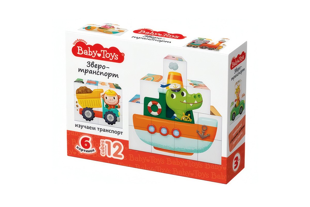 Кубики "Зверотранспорт" 12 шт Baby Toys