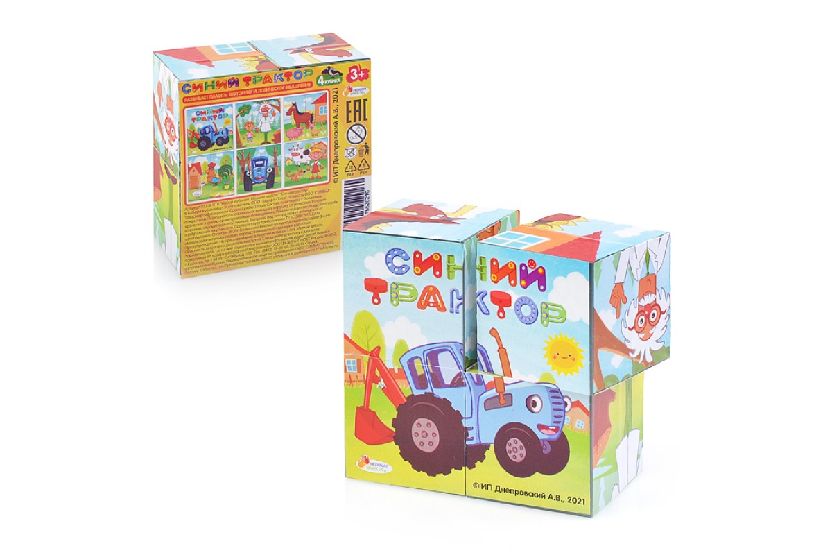 Набор из 4-и кубиков "Синий трактор"