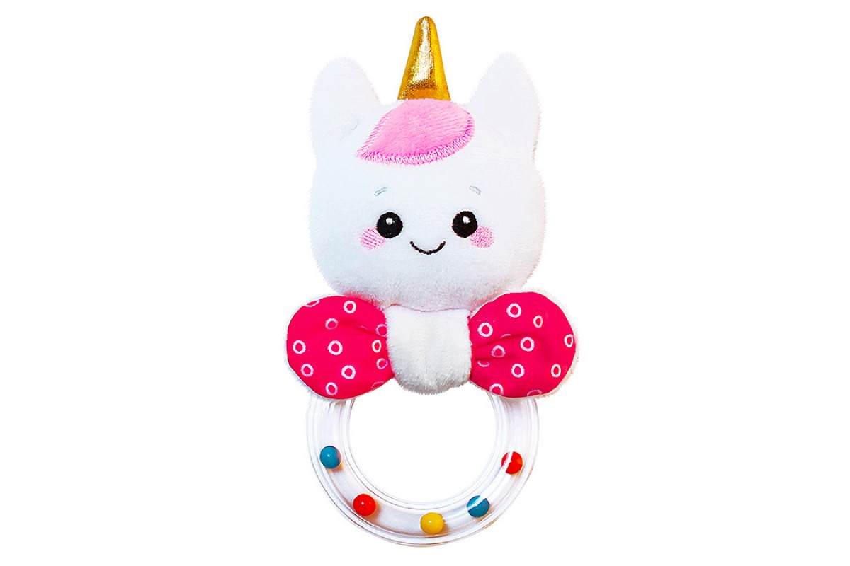 Состав: пластмассовое колечко с разноцветными шариками, плюш, хлопок, синтепух.