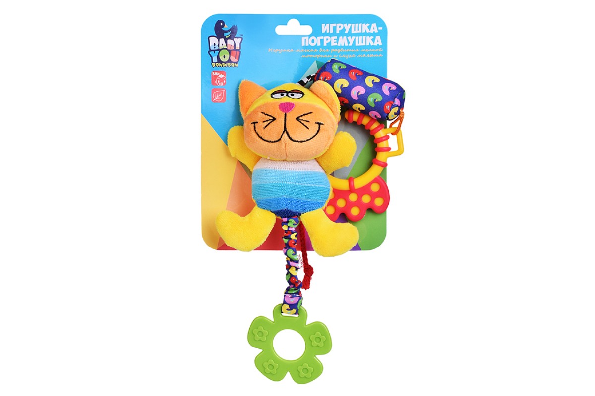 • С помощью кольца игрушку можно прикрепить на коляску, кроватку, манеж или развивающий коврик.