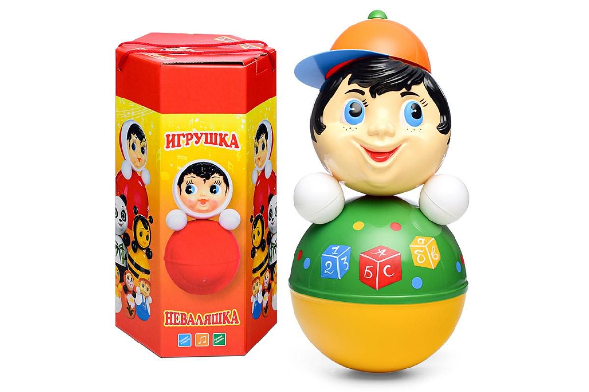 • Звонкая неваляшка издает приятные звуки при покачивании, завлекая ребёнка.