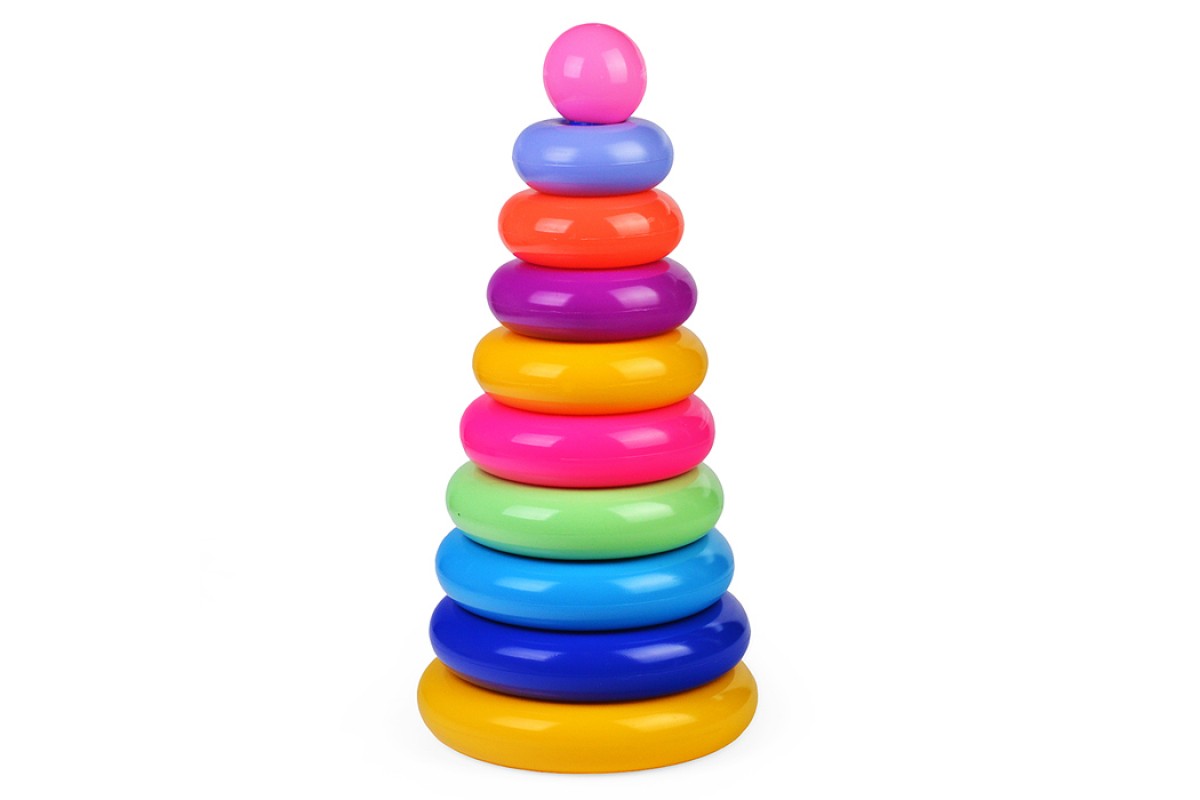 Пирамидка станет прекрасным пособием для первого знакомства ребёнка с основными цветами, поможет развить и улучшить координацию движений, получить представления о размере и цвете