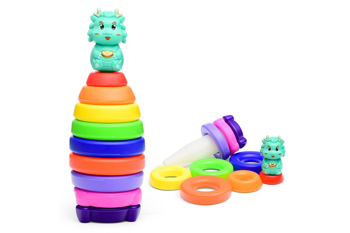 Пластмассовая игрушка состоит из стержня, 9 колец.