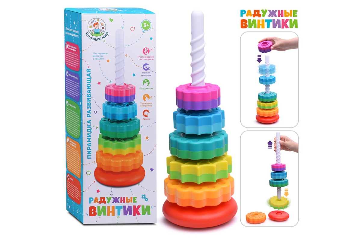 Пирамидка "Радужные винтики" в коробке