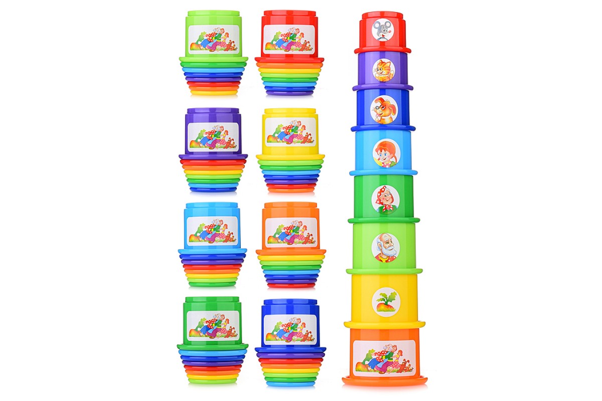 В комплекте: 8 цветных стаканчиков разного диаметра (5-7.5 см.).