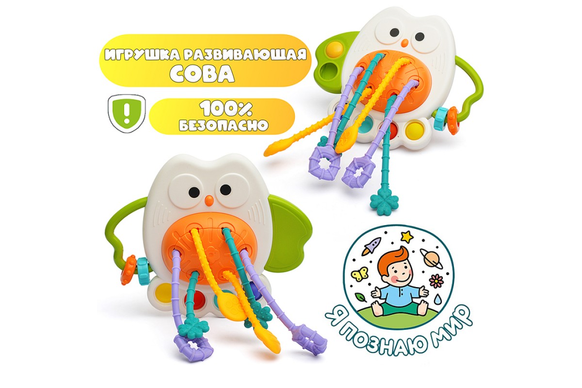 • Игрушка состоит из 6 тянущихся силиконовых нитей, 4-х пупырок "POP IT" и кнопки-слайдера