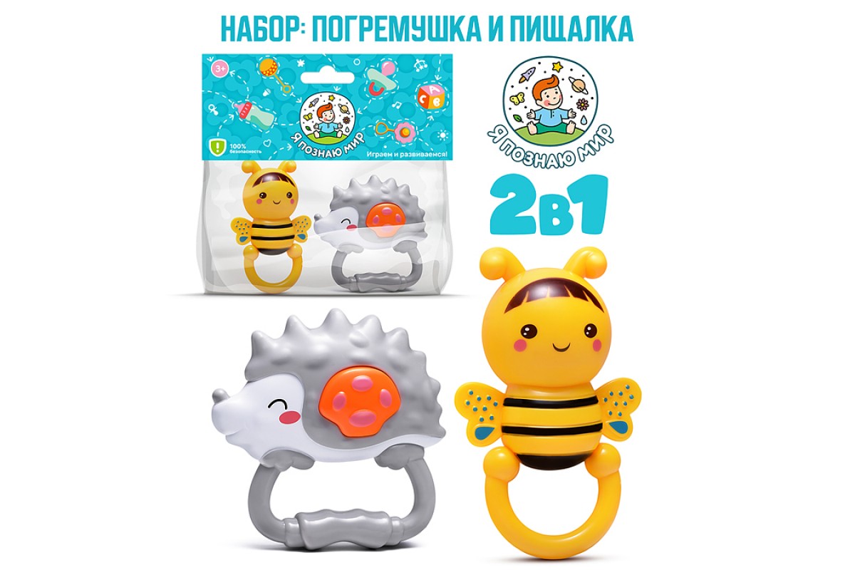 Набор погремушек "Ёжик и пчелёнок" в пакете