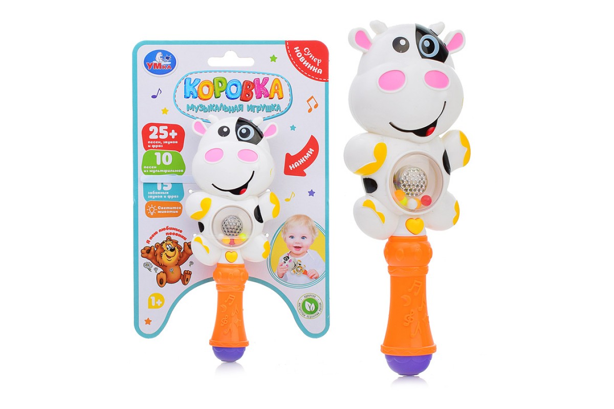 Погремушка Коровка (25 песен, звук, фраз. бат.) на картоне