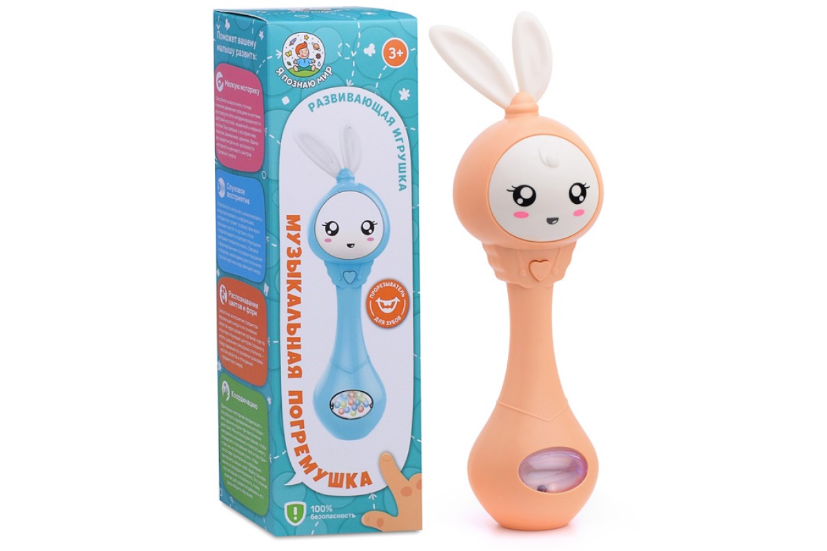 Погремушка-прорезыватель "Зайка" (цвет бежевый) в коробке