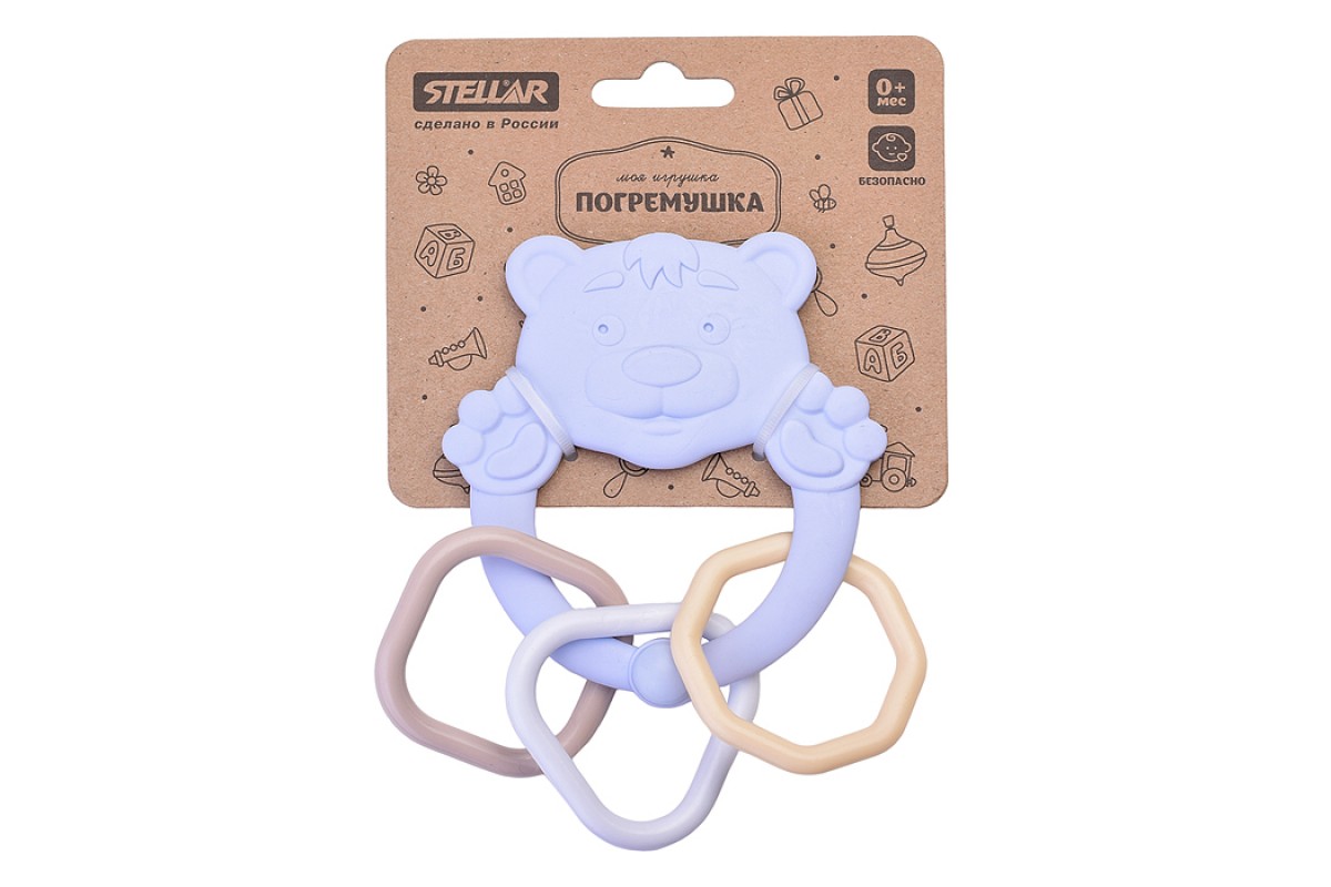 Игрушка отвлечет малыша от болей во время прорезывания зубиков, геометрические фигурки, надетые на ручки прорезывателя позволят развивать мелкую моторику