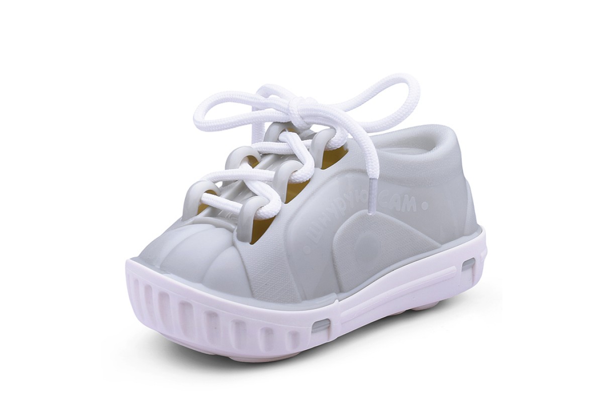 Игрушка выполнена в форме настоящего ботинка, который можно зашнуровывать разными способами.