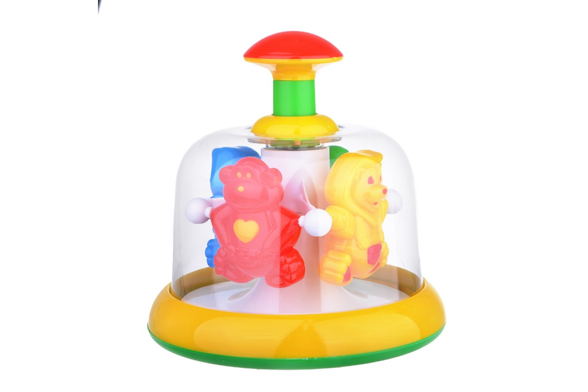 карусель под прозрачным куполом. Малыш может наблюдать за движением фигурок, влиять на их скорость и слушать звуки.