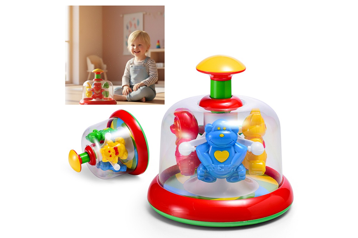 • Юла прочно стоит на поверхности и «не убегает» от малыша, поэтому он может играть с ней даже в одиночестве. А цветовое решение игрушки полностью отвечает особенностям младенческого восприятия.