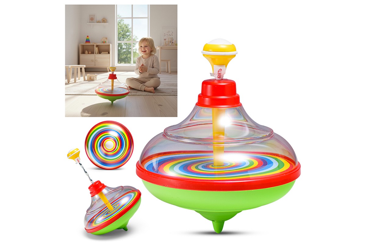 Ваш малыш с большим интересом будет рассматривать яркие детали игрушки, пробовать запускать юлу легким нажатием рычажка, наблюдать за ее волшебным вращением и слушать при этом весёлую мелодию.