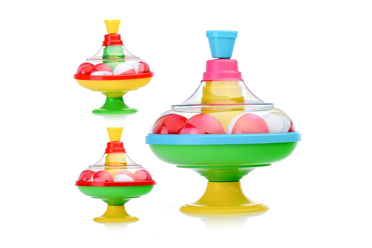 Малыши готовы снова и снова запускать юлу, чтобы смотреть, как под ним прыгают и гремят шарики.