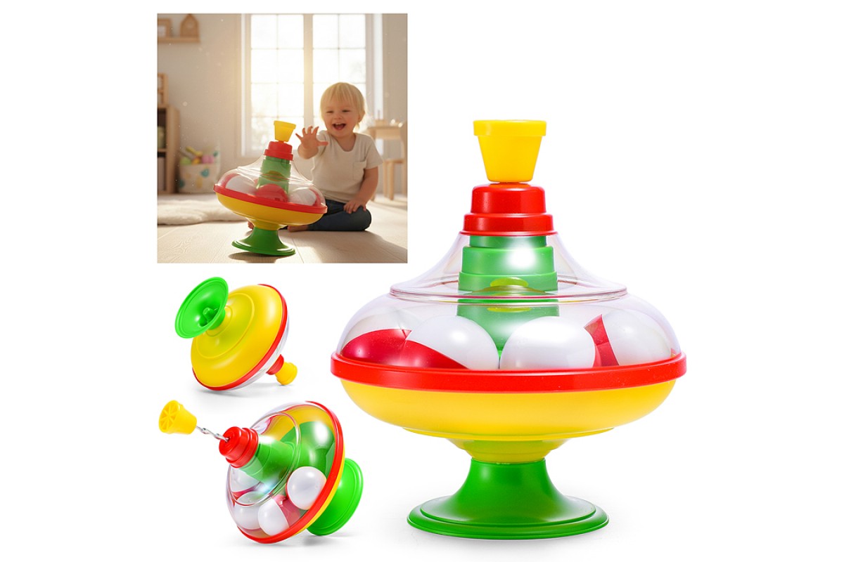 Малыши готовы снова и снова запускать юлу, чтобы смотреть, как под ним прыгают и гремят шарики.