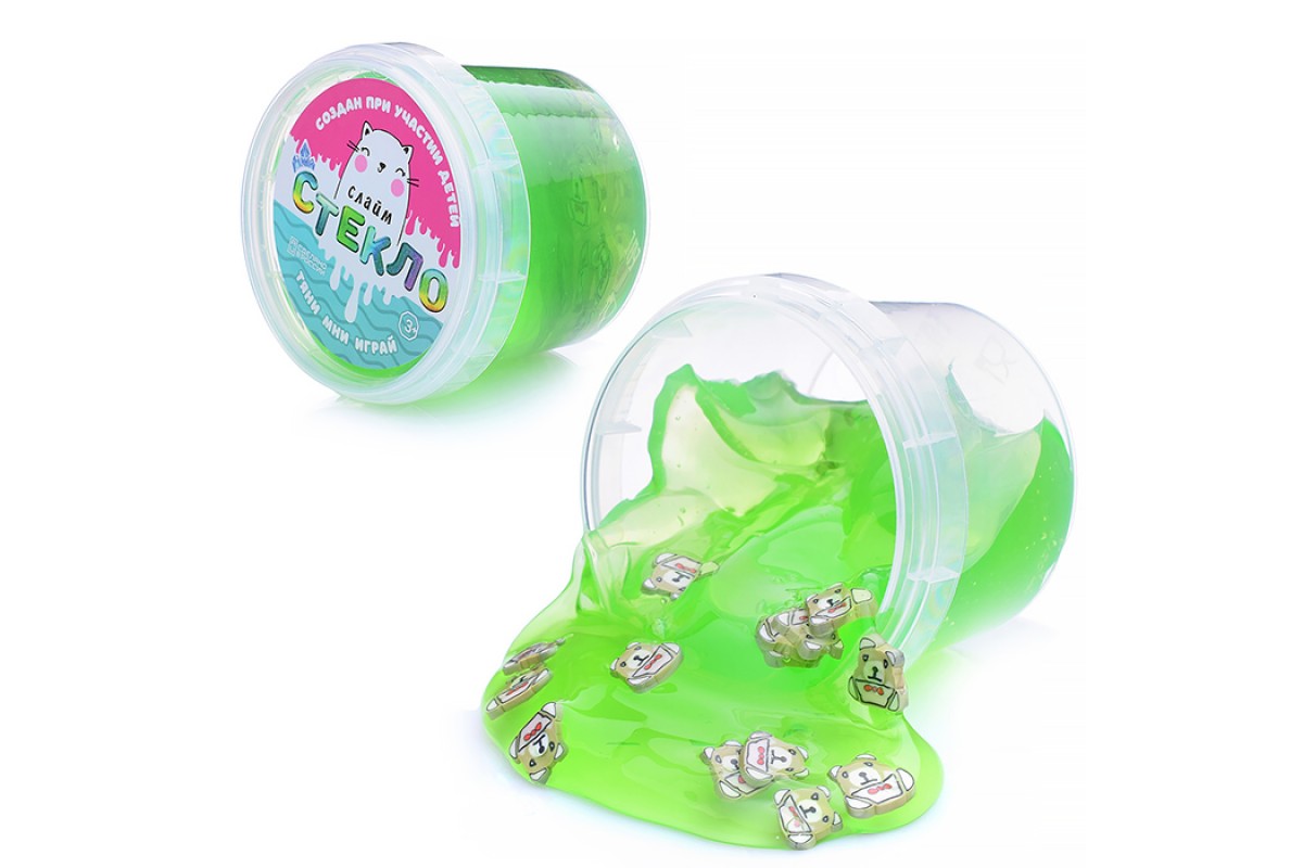 Слайм "Стекло" 100 гр, зеленый с декоративным наполнителем