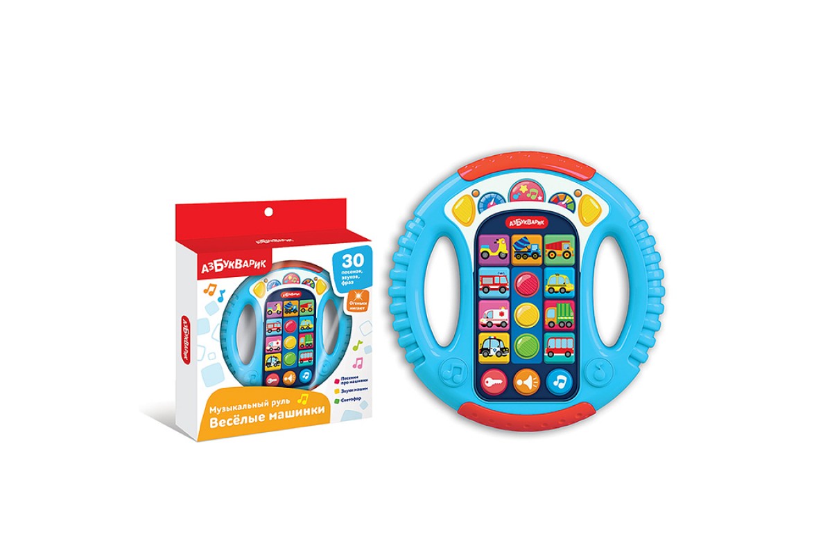 Всего в игрушке – 30 песенок, звуков, фраз. «Музыкальный руль Веселые машинки» пригодится не только для развлечения, но и для развития ребенка.