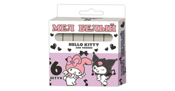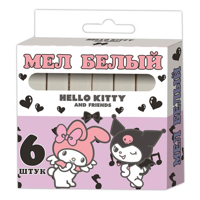 Мел белый "Kuromi+My Melody" 6 шт в картонной упаковке с европодвесом