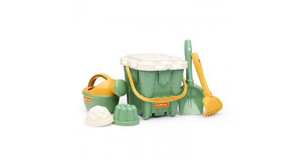Набор №694: ведро-замок большое №2, ситечко-крепость большое, лопатка №5, грабельки №5, 2 формочки, лейка малая №4 (бледно-зелёный)