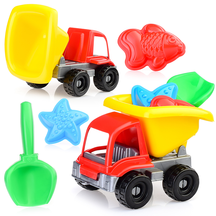 Песочный набор "Дорожный" в рюкзаке ( 2 формочки, совок, машинка )