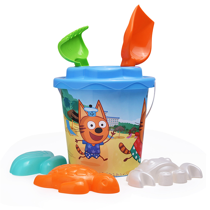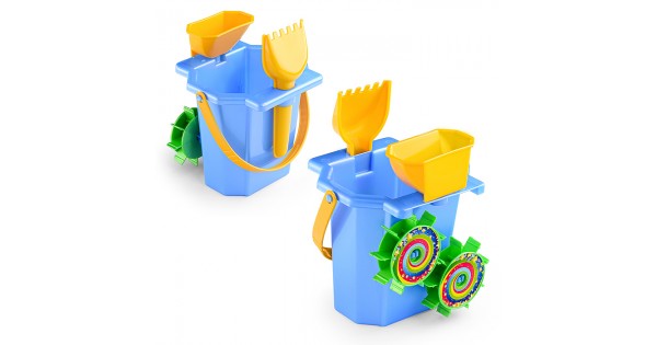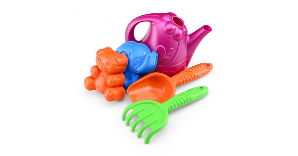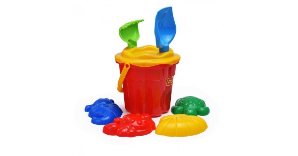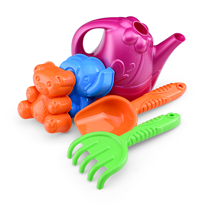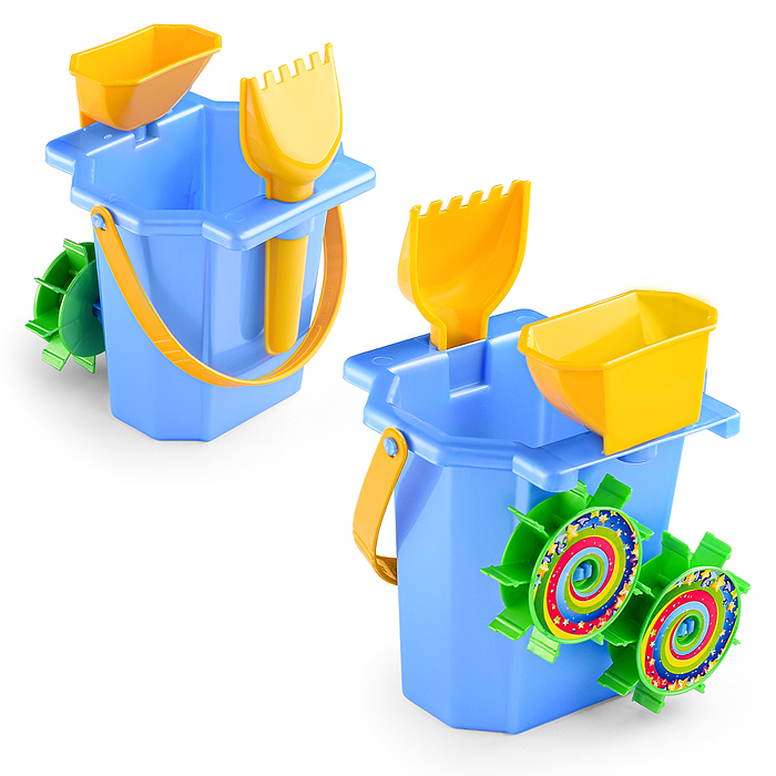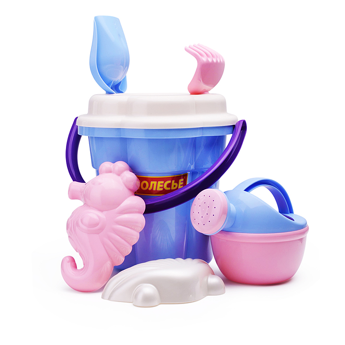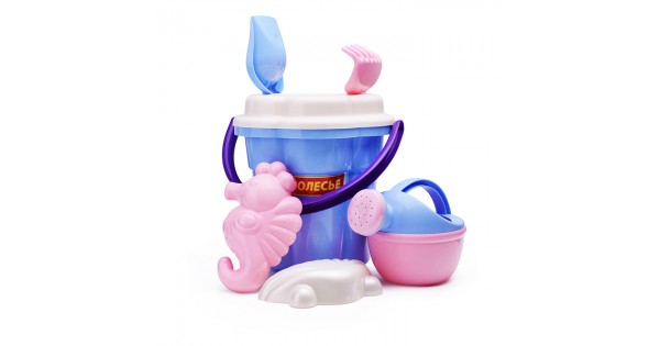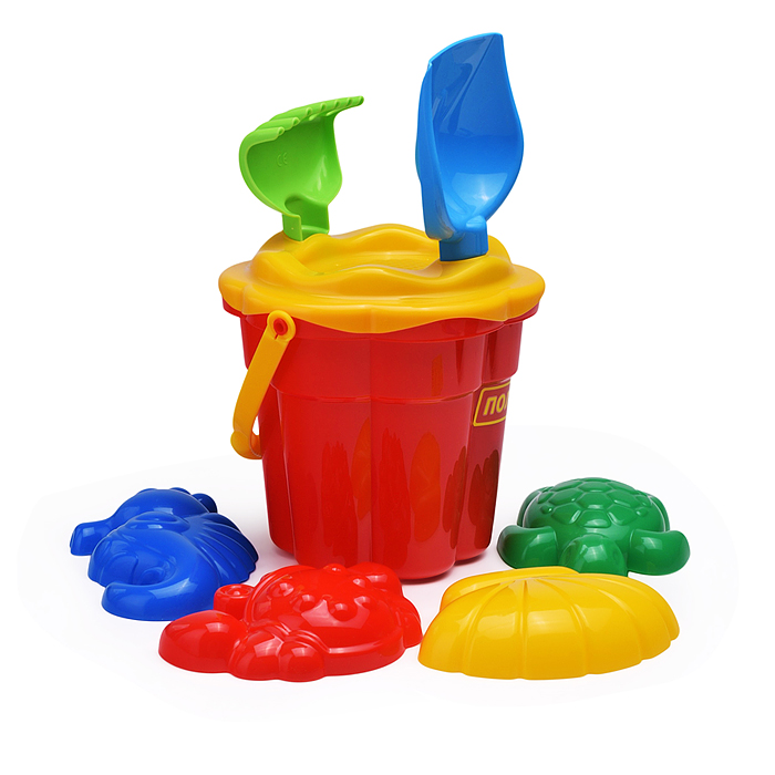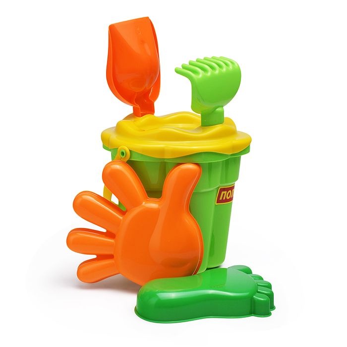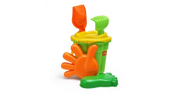 Набор №308: ведро-цветок среднее №3, ситечко-цветок среднее №3, лопатка №5, грабельки №5, формочки (ладошка + ножка)