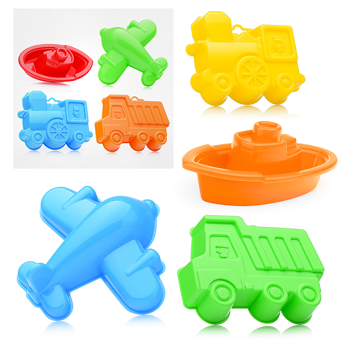 Набор №258: формочки (самосвал + паровоз + самолёт), кораблик "Юнга"
