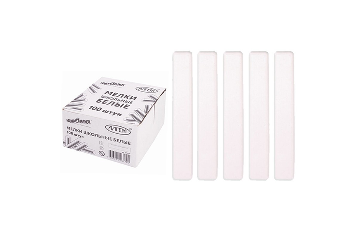 Мел белый, натуральный, набор 100 шт, квадратный