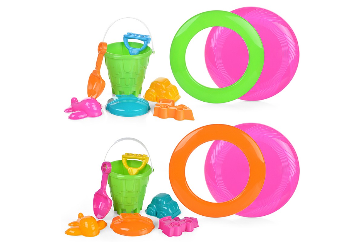 Набор летний №4 (ведро+совок+грабли+фрисби+кольцо+4 формочки)