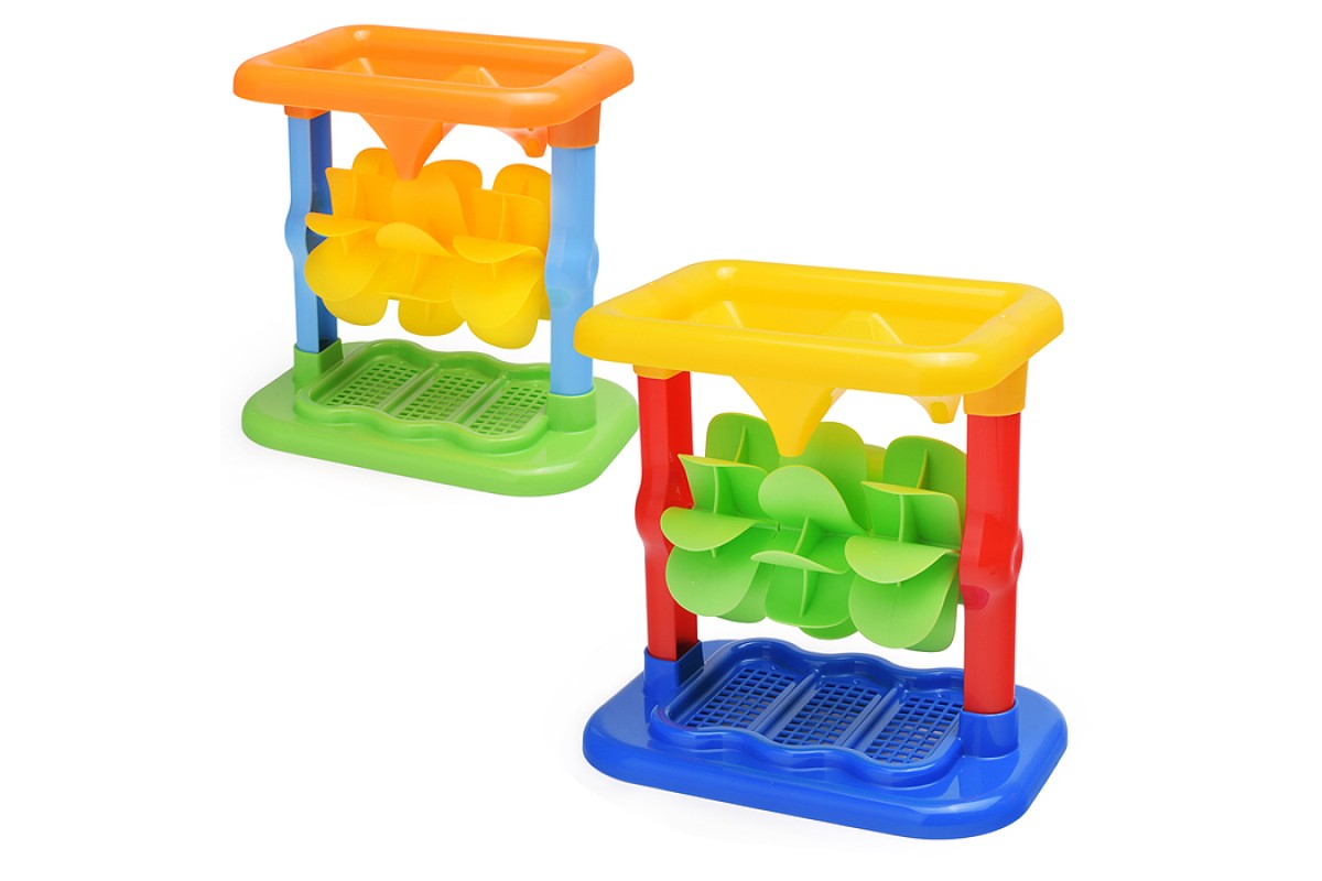 • При насыпании песка, внутри мельницы вращаются колёса.