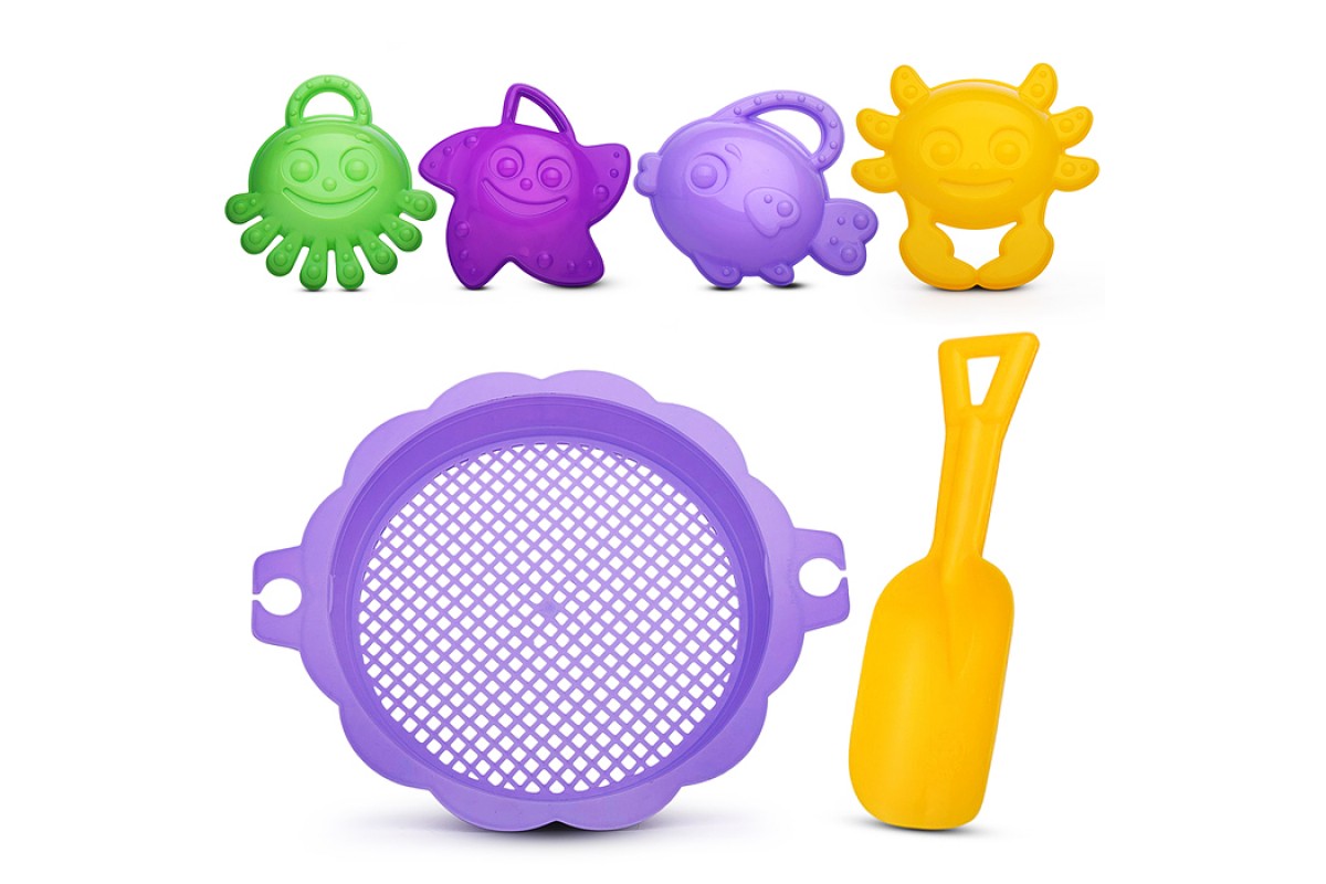 • 4 формочки с изображениями морских обитателей.