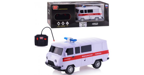 Машина р/у УАЗ 452 Скорая Помощь, 18 см, (свет, бел,) в коробке