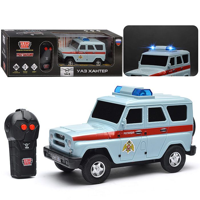 Машина р/у УАЗ Хантер Росгвардия 15 см, свет, серый, в коробке