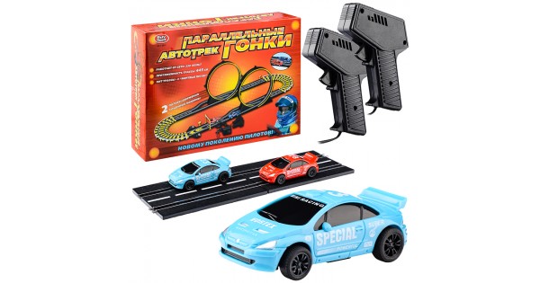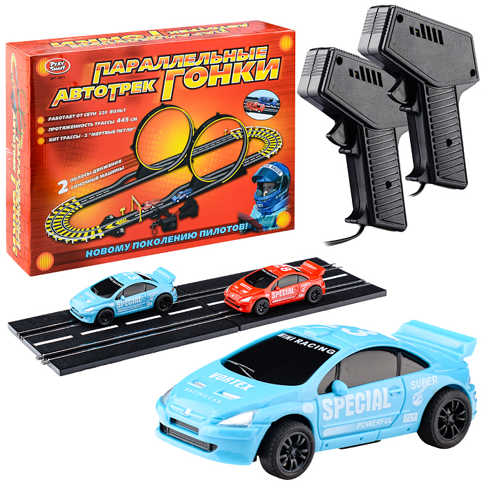 Автотрек "Параллельные гонки" (445 см.) от сети 220в, в коробке