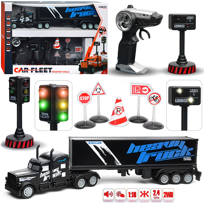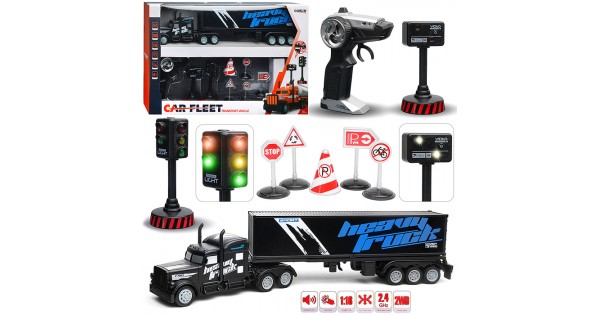 Машина "Контейнеровоз" с дорожными знаками (чёрный) р/у, 27 MHz, в коробке